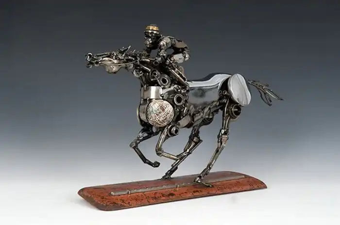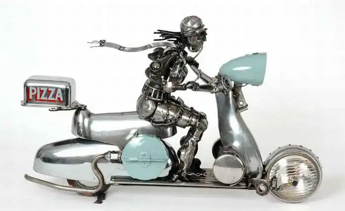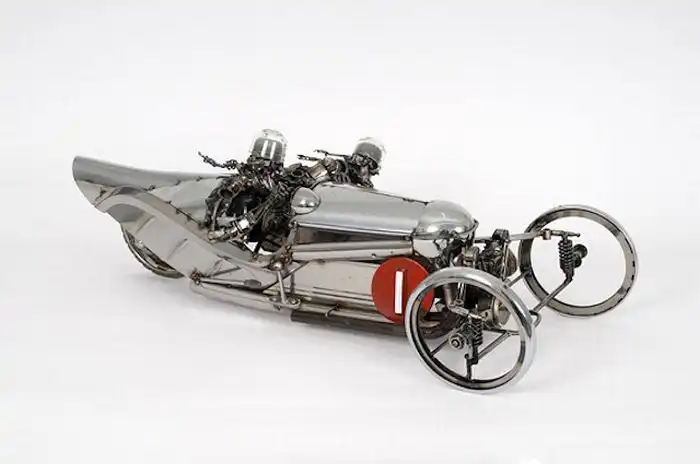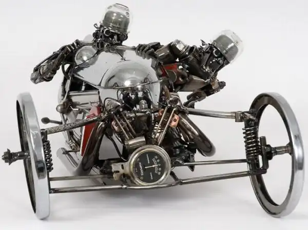 Австралийский художник и скульптор Джеймс Корбетт (James Corbett) создает скульптуры стоимостью несколько десятков тысяч долларов из выброшенных на помойку автомобильных запчастей.