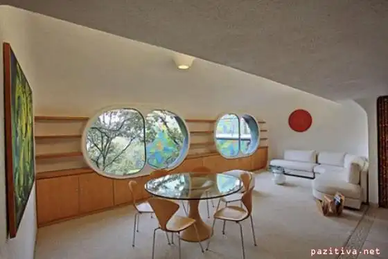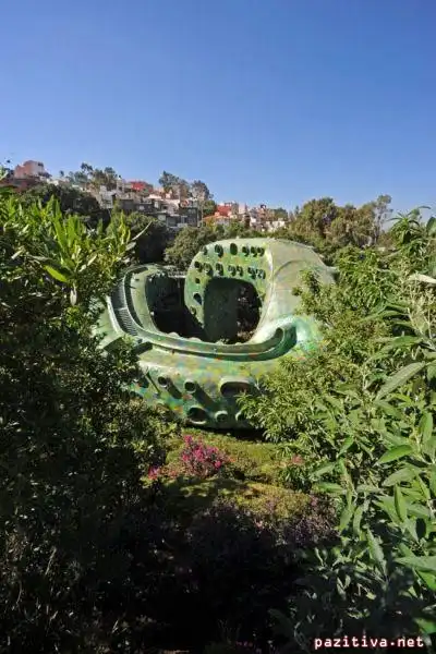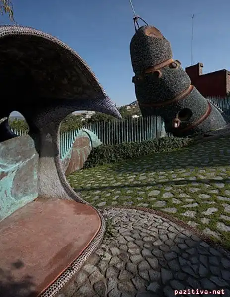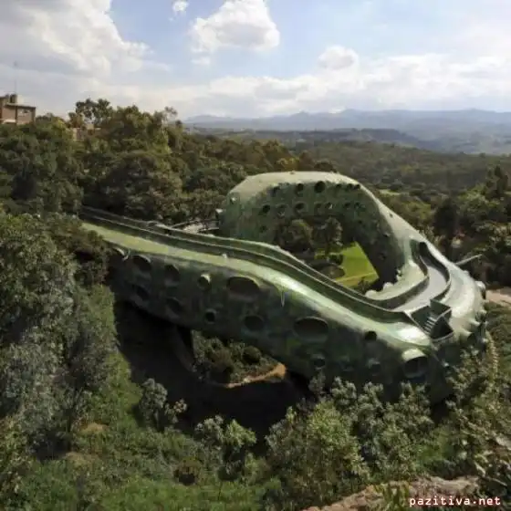 Забавный дом построил мексиканский дизайнер Javier Senosiain. Называется он Quetzalcoatl Nest (гнездо Пернатого Змея) в честь древнего божества.