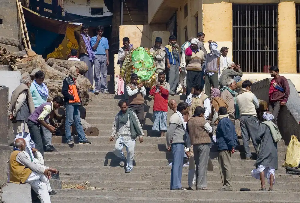 Согласно традиции, в Индии принято кремировать умерших на дровах, а их останки сбрасивать в священную реку Ганг.
