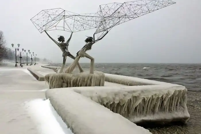 В Петрозаводске неожиданно началась зима, сильный ветер,волны и мороз, дали вот такой результат. Жесть какая-то!