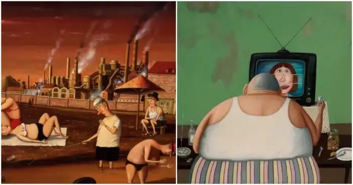 Художник изображает на картинах быт советского времени, получается очень здорово.