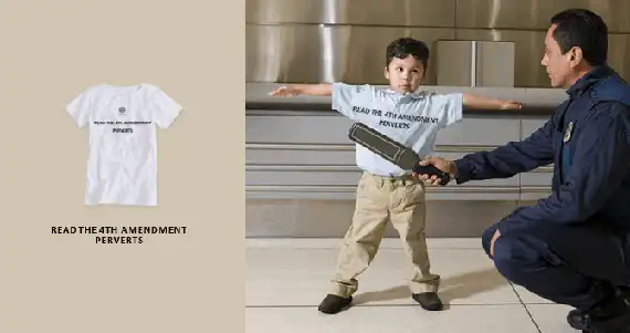 Многих очень сильно раздражает, когда каждый раз при досмотре в аэропорту абсолютно посторонние люди вторгаются в личное пространство и разглядывают ваши части тела на экранах раздевающих сканеров. Специально для таких случаев 4th Amendment Wear создали особую коллекцию нижнего белья. Специальной металлизированной краской на одежду нанесен текст, светящийся в излучении сканеров и, в отдельных случаях, закрывающая интимные места недовольных пассажиров.