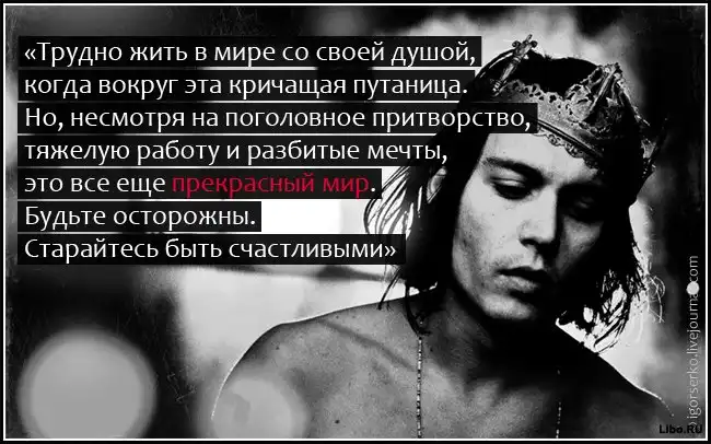 А в короне, с цитатой про "кричащую путаницу" это же Джонни Депп? А из какого фильма кадр взят кто-нибудь знает?