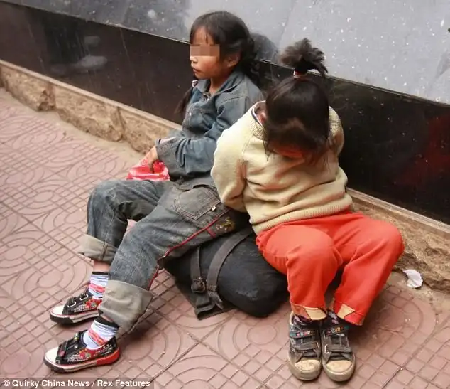 Отец привязывает близняшек к ограде, когда уходит на работу.Странные нравы у китайцев.