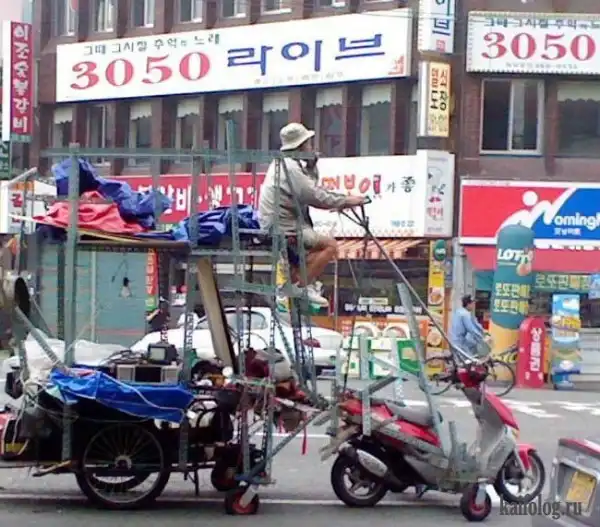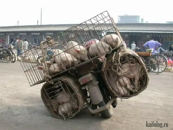 забавно. никогда бы не подумала, что на велосипеде можно перевозить холодильник))))))