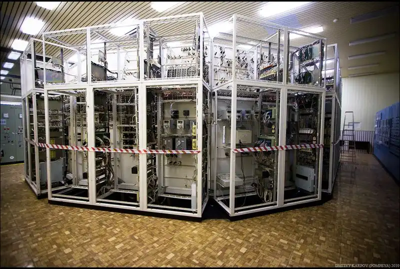 Люди! Не тупите! Это реально Кольская АЭС. И именно в таком виде она и существует. Сам там работаю и могу подтвердить наличие данного оборудования именно в такой цветовой гамме (по ГОСТ выкрашено, если что). Главного диспетчера, конечно, нет. Есть начальники смен. Просто по-видимому, писал комменты человек, который к атомной энергетике и производству имеет косвенное отношение. Конечно, туда так просто не пускают. Но экскурсии организовывают время от времени. И фото в таких случаях делать разрешают