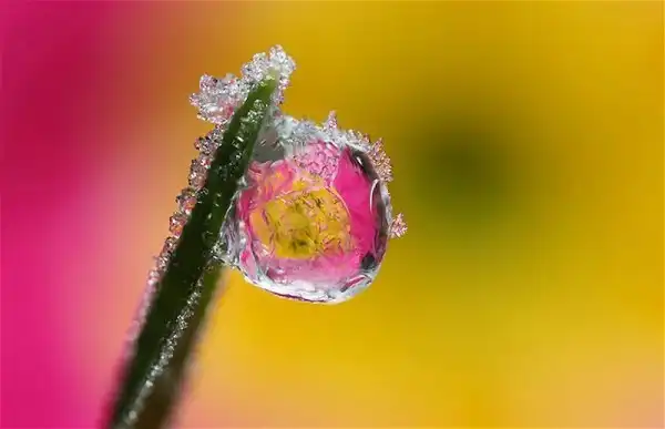 11. Замерзая на листике травы, капля росы стала принимать форму снежинки.