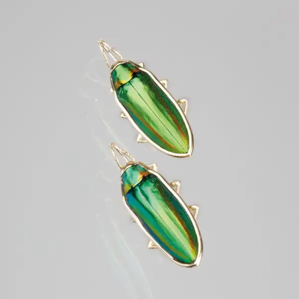 В самый первый раз греческий ювелирный дизайнер Лито Каракостаноглоу (Lito Karakostanoglou) использовала для создания ожерельев и сережек настоящих жуков. А потом она начала путешествовать в Индию, Нью-Мехико, Китай и Марокко (и вообще по всему миру) в поисках великолепных камней и оригинальных органических материалов. Так получилась изящная коллекция зооморфных ожерелий из рубинов и черных, белых и коричневых алмазов
