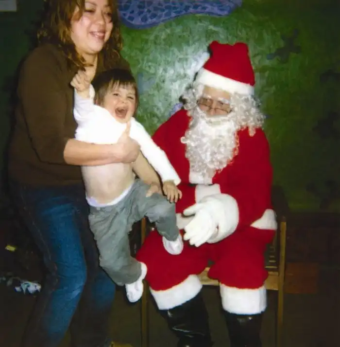 у америкосов вобще тупые дети, но на руках у некоторых Сантах я бы сам заплакал