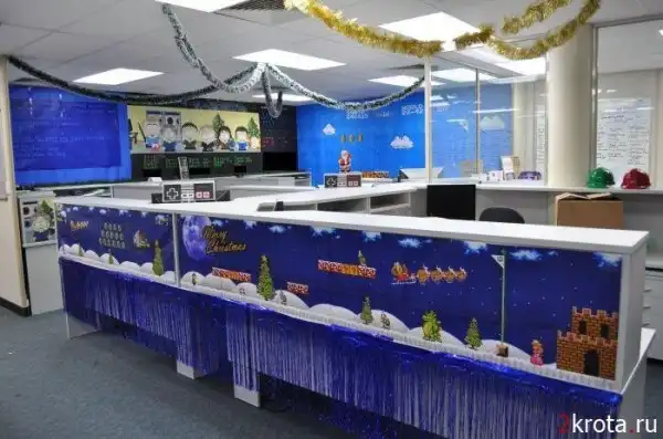 Начальник одной компании, попросил ребят из отдела IT, украсить свой офис к новому году,ну как еще программисты могли нарядить свое рабочее место, они решили придать стиль старых компьютерных игр.