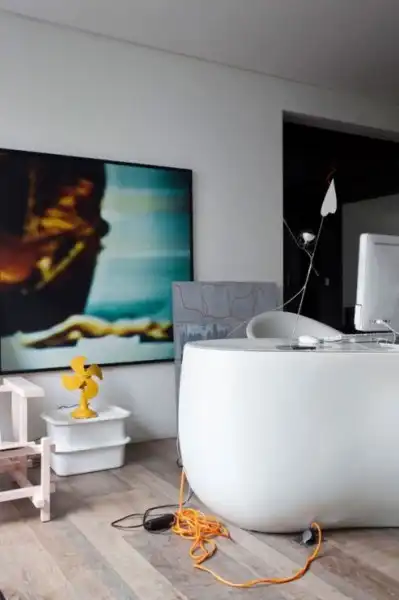 Владелец дизайн-бутика MiCasa в Сан-Паулу Хуссейн Яруш (Houssein Jarouche) дал франко- бразильской архитектурной студии Triptyque полную творческую свободу по оформлению его квартиры на 300 квадратных метров. Главной изюминкой проекта стал гибкий, как гигантская скульптура, книжный шкаф, который делит пространство.