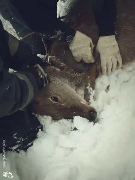 Как выяснилось, даже погрызеный олень бегает не медленно и конечно же имеет преимущество перед человеком, утопающим в сугробах
