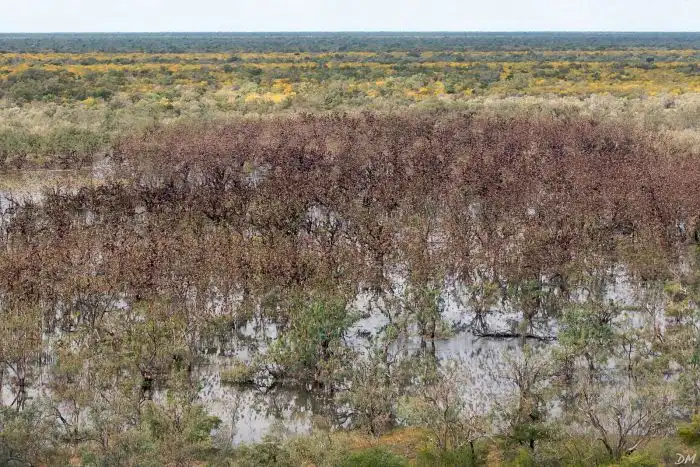 Интересная картина получается, половина деревьев с зелеными листьями,