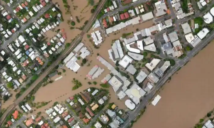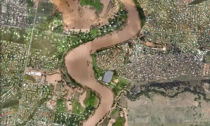 Наводнение, нахлынувшее на третий по величине город в Австралии, охватило также все окрестности.