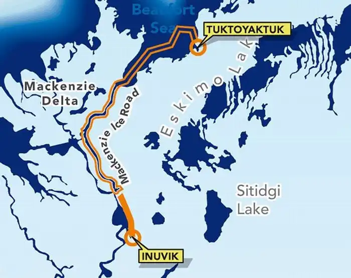 Эта дорога соединяет два города в Канаде и проехать по ней можно только зимой, когда во время сильных морозов замерзает река.