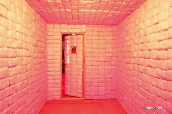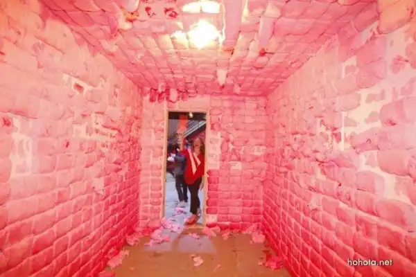 Эта небольшая комната целиком сделана из сладкой ваты.А именно из 1600 кусков, судя по фотографиям эта вата была даже вкусной.А вы хотели бы вспомнить детство и побывать в такой комнате?)