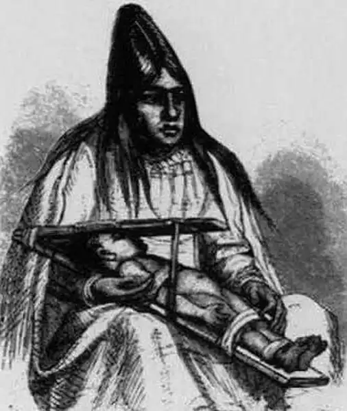 на лоб и на затылок накладываются иногда дощечки, что ведет к резкому уплощению лба и затылка.
