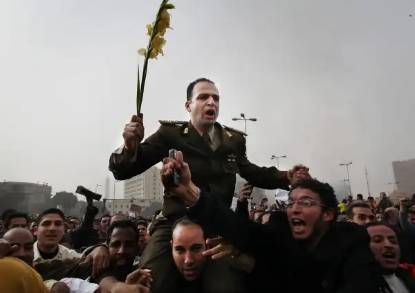 В настоящее время массовые митинги проходят на центральной столичной площади Тахрир. По самым скромным оценкам, там собрались около 50 тыс. человек. Протестующие приветствуют армию, "братаются" с военнослужащими.
