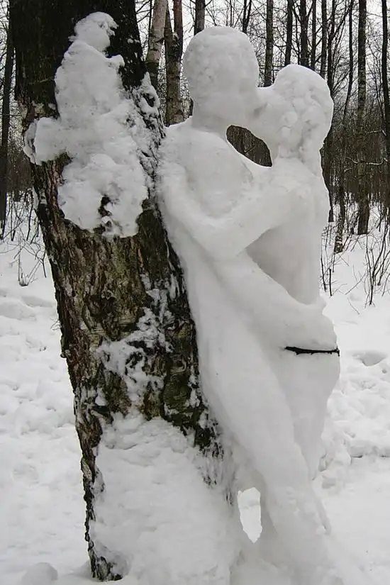 Это не снеговики:))это фигуры из снега:))но классно,что народ так умеет,только помойму девушку с парнем местами поменять,да и вообще лучшеб зверушку слепили:)))