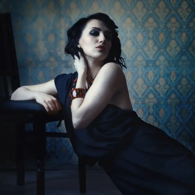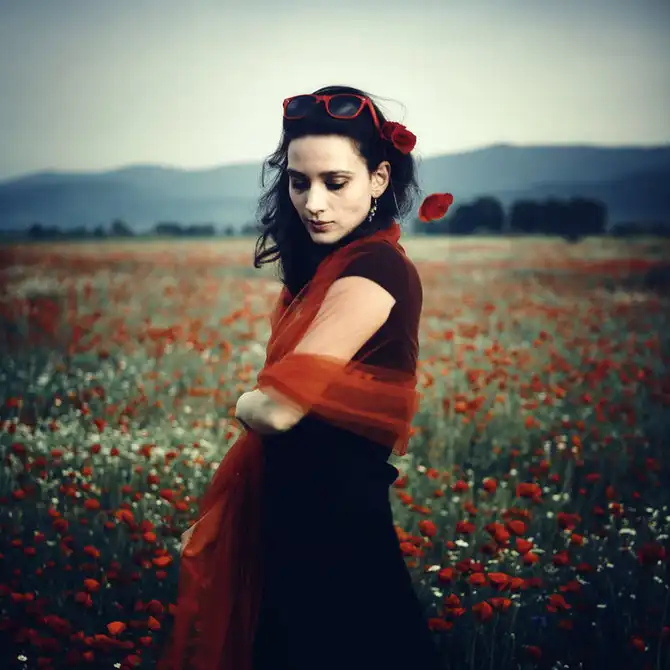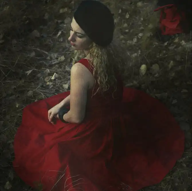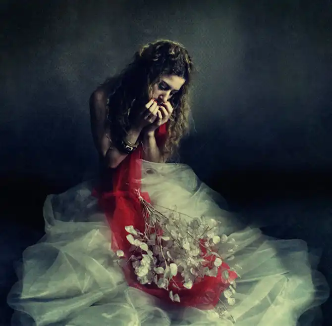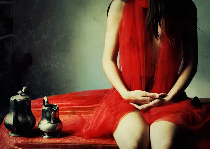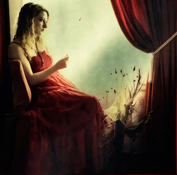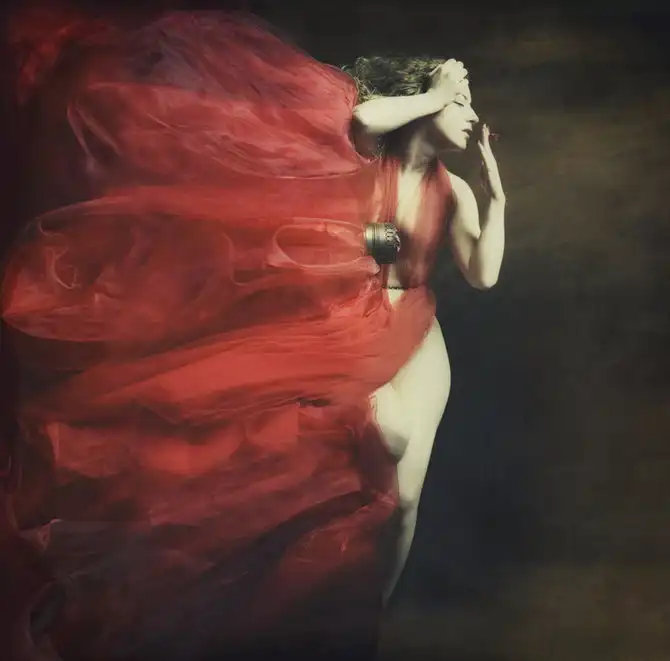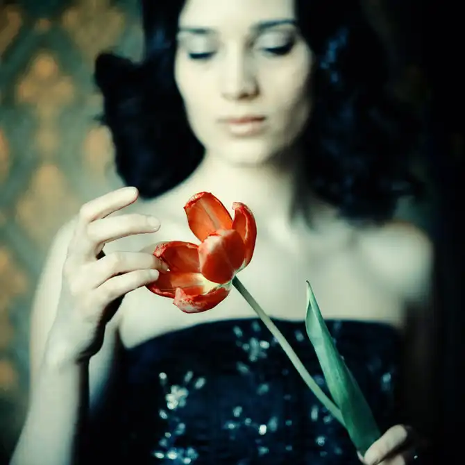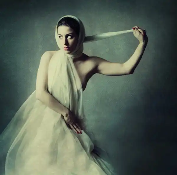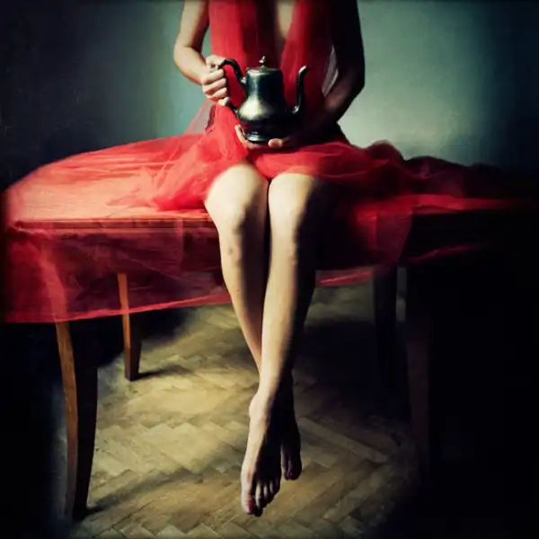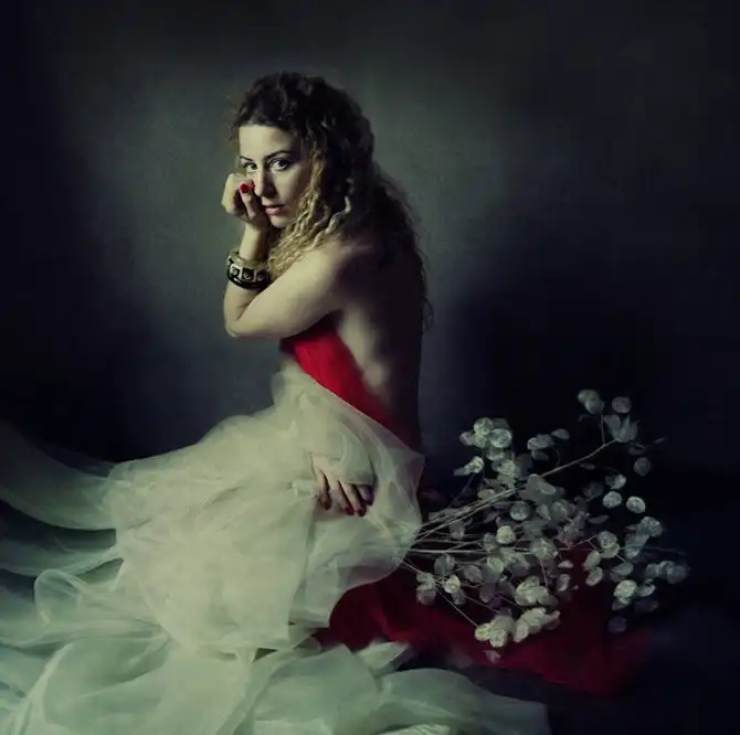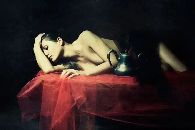 девушка красивая, а еще композиция с красной тканью и чаничком понравилась)