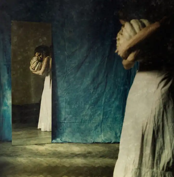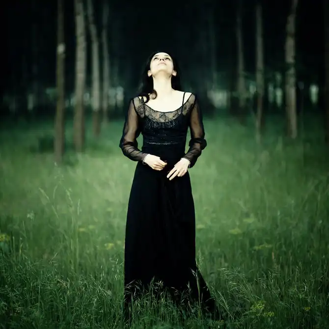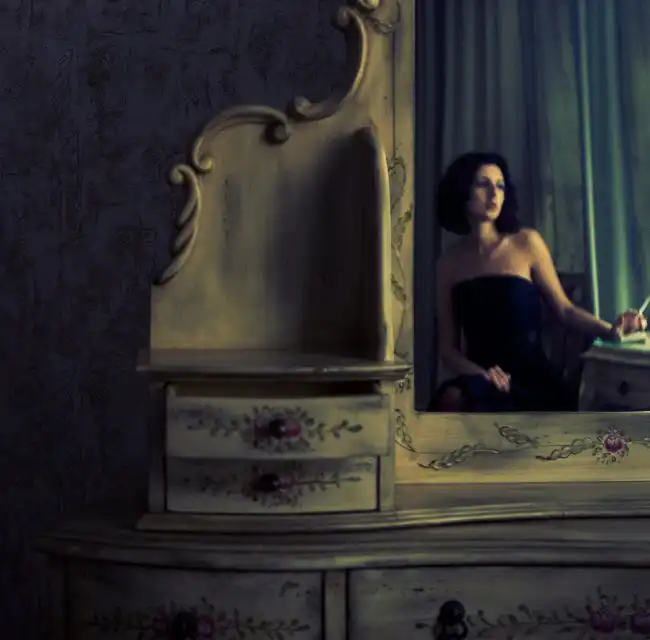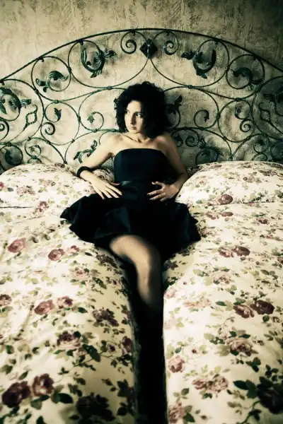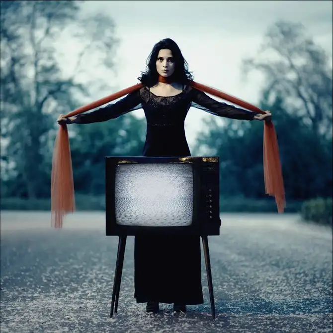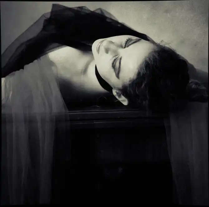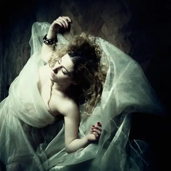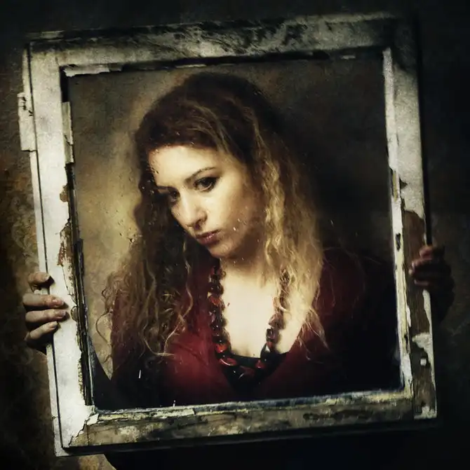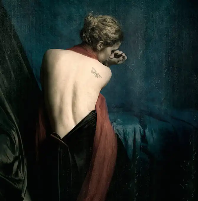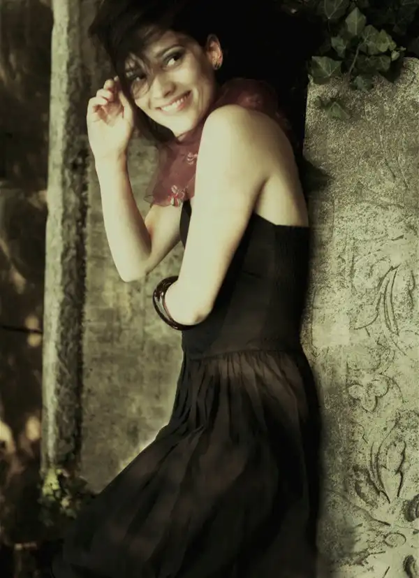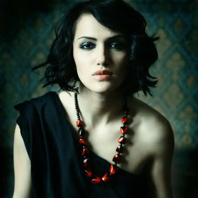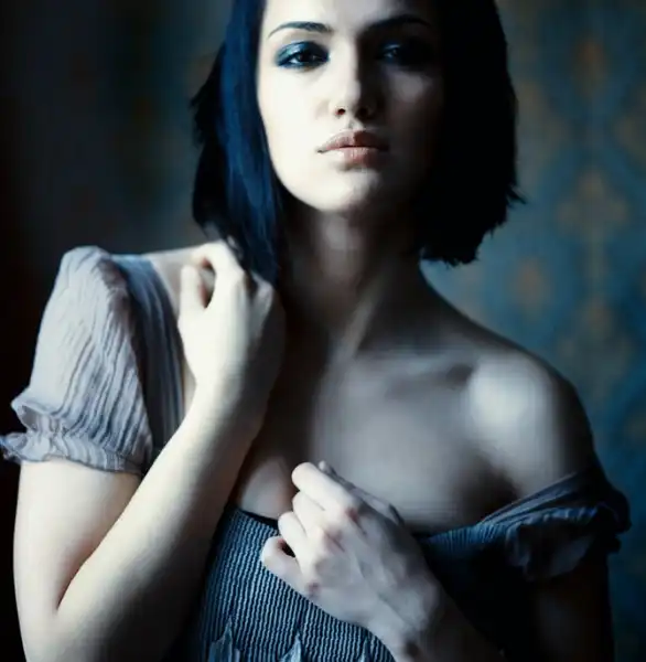 девушка красивая, а еще композиция с красной тканью и чаничком понравилась)