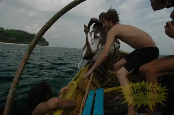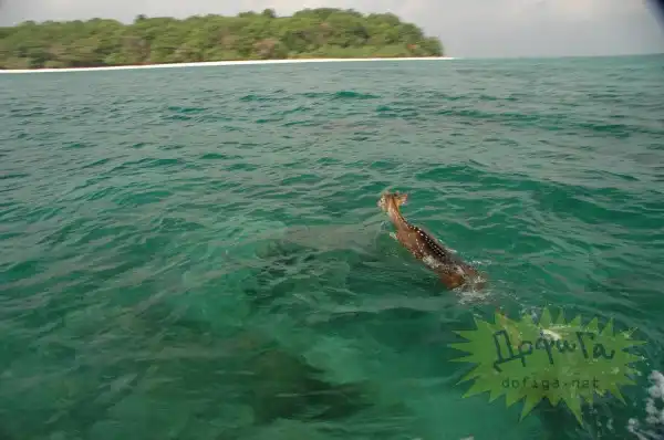 Дело было в Таиландском заповеднике. Тигр гнался за косулей , но добежав до воды бросил свою потенциальную добычу и удалился , так как увидел рыбаков. Косуля же продолжила своё бегство и пустилась вплавь в океан. Рыбаки начали догонять животное , чтоб спасти от гибели судя по фоткам прилично за ней погонялись и вернули животинку в заповедникю.