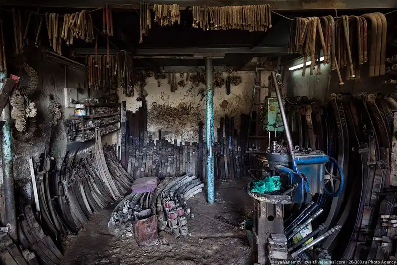 Здесь ремонтируют в основном тяжелую строительную технику, автобусы и фуры.