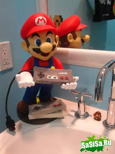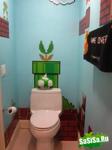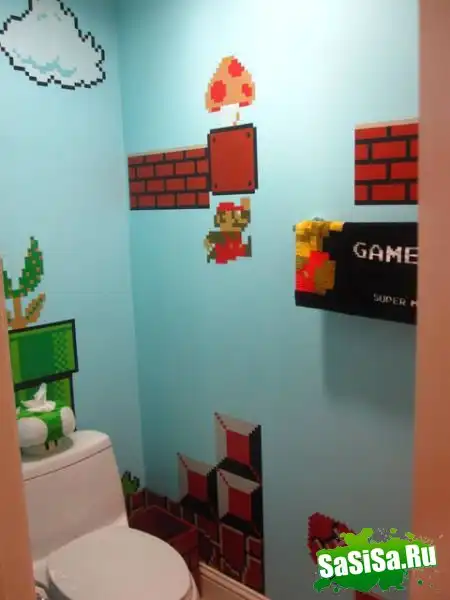 По всей вероятности эта девушка очень любит игру Супер Марио, догадаться было не сложно, так как она затеяла ремонт в туалете и сделала все в стиле этой игры.