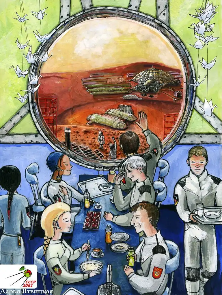 Интересный конкурс был проведен, темой которого стало освоение космоса во времена СССР. Невероятные постройки, техника, колонии на Марсе и других планетах, все это участники отразили в своих работах. Очень классные иллюстрации и идея.