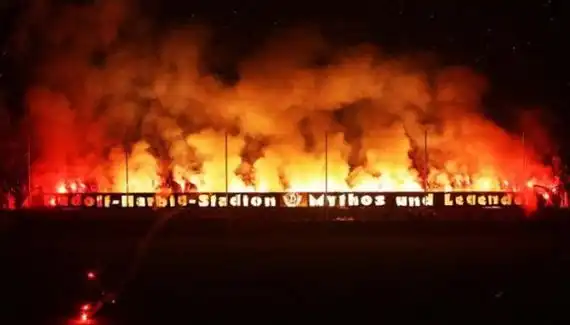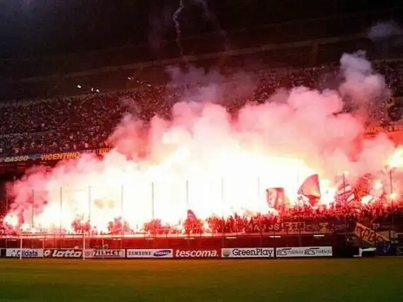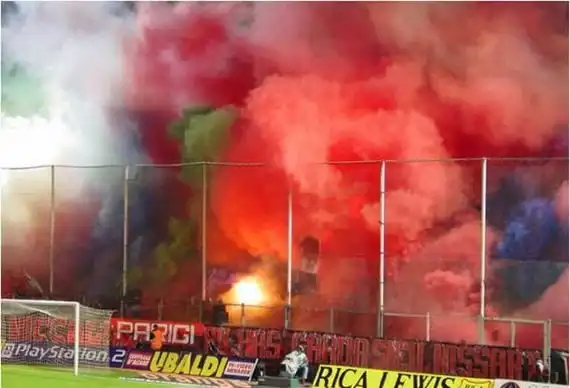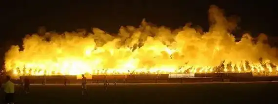 Футбольные болельщики часто жгут файеры на матчах и запускают дымовые шашки. Получается жуткое и одновременно красиво зрелище...