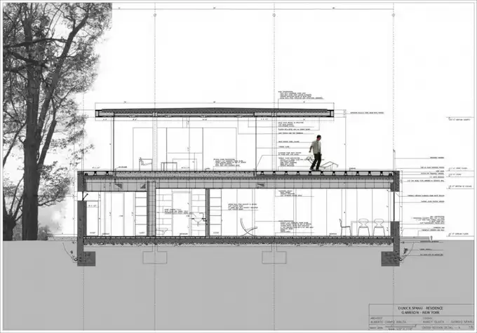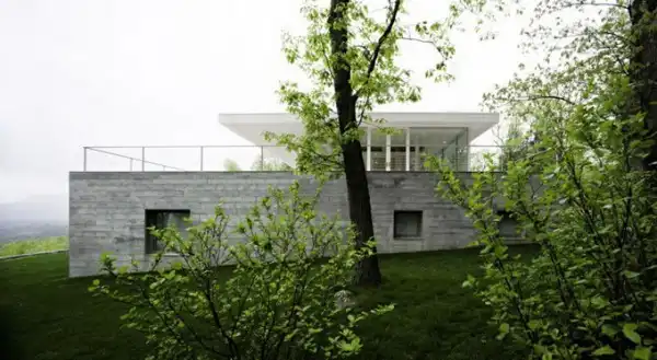 Olnick Spanu House - прекрасная вилла, представленная студией Alberto Campo Baeza Architects. Это одноэтажный дом, полностью прозрачный по периметру, 37 м длиной и 16 м шириной ( а также 3,6 м высотой), построенный в районе Нью-Йорка. Благодаря стеклянным стенам, жителям этого дома круглосуточно открывается панорамный вид на прилежащий парк, что не может не радовать.