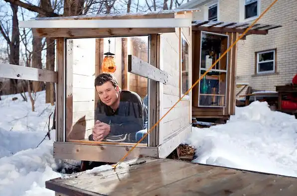Снимать квартиру в Москве - удовольствие не из дешевых. Иногда весь месяц на квартирные расходы только и приходится работать. Но есть выход из этой ситуации - 600 долларов, и вопрос с жильем решен раз и навсегда. Американец Дерек Диедрискен из города Стоутон, штат Массачусетс, построил три небольших домика, каждый из которых по материалам обошелся ему в 200 долларов. Жилье он делит с женой, двумя детьми и очень большой собакой.