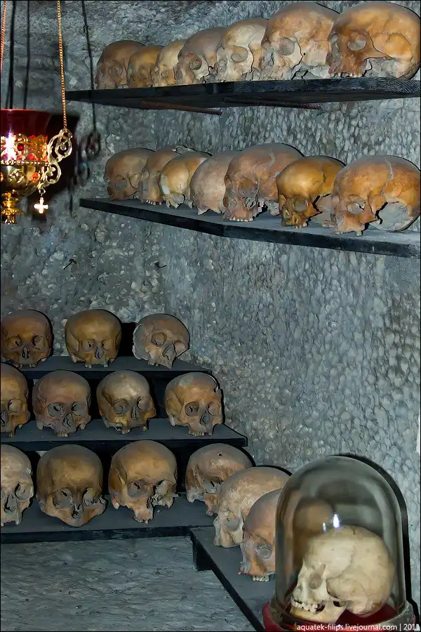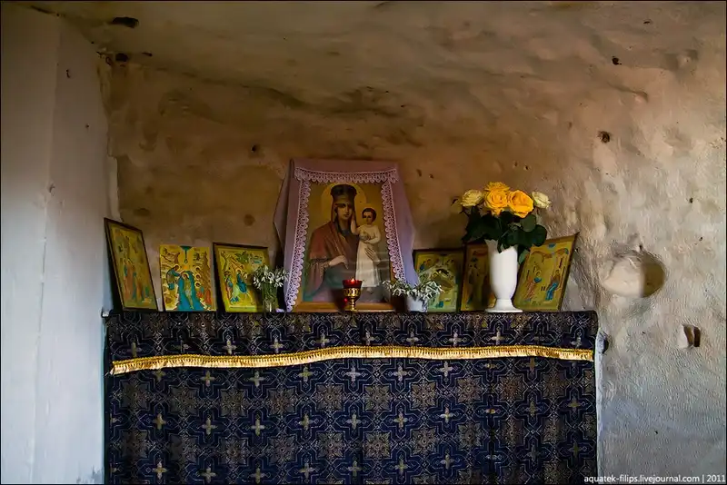 Несмотря на то, что монастырь вырублен в скале, внутри очень светло, благодаря вот таким небольшим окошкам в коридорах, кельях и залах. После захвата в 1475 году крепости Каламита турками, монастырь постепенно пришёл в упадок. Крепость была переименована в Инкерман, что и дало название возникшему здесь городу. С 1783 года город принадлежал России. В 1850 году монастырь был возрождён и получил современное двойное наименование — по имени города и в честь св. Климента. В 1931 году в пещерных храмах прекратились богослужения, монастырь был окончательно закрыт, его имущество передано Севастопольскому музейному объединению. После закрытия монастыря в нём остались жить его настоятель Венедикт, отец Прокопий и два 85-летних старца. Во время Великой Отечественной войны в пещерах монастыря размещался штаб 25-ой Чапаевской дивизии Приморской армии. В июне 1942 года солдаты этой дивизии на Инкерманских высотах сдерживали врага, рвавшегося к Севастополю. В честь героических воинов Чапаевской дивизии в монастыре установлен и свято чтится монумент.