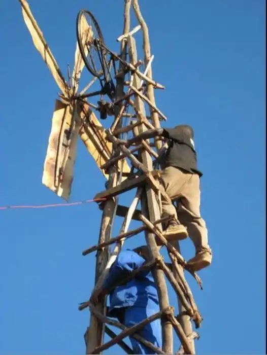 Житель африканского государства Малави Уильям Камквамба построил из подручных материалов электростанцию из пяти ветрогенераторов. Идея построить ветряную установку пришла Камквамбе в 2002 году, когда его отчислили из школы за неоплату обучения. 14-летний подросток решил заняться самообразованием и стал посещать местную библиотеку, где и увидел изображение ветряка.