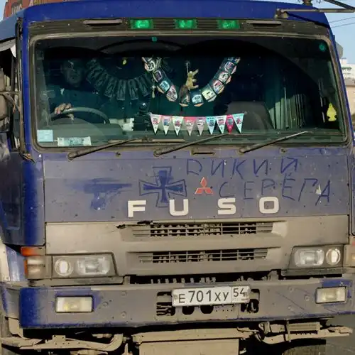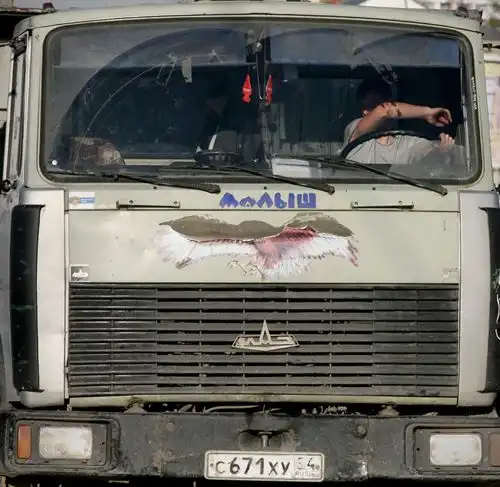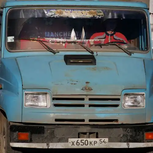 Подборка фотографий, запечатливших лица российских водителей за рулем их автомобилей, в основном грузовиков, где усталые лица людей соответствуют состоянию их техники.