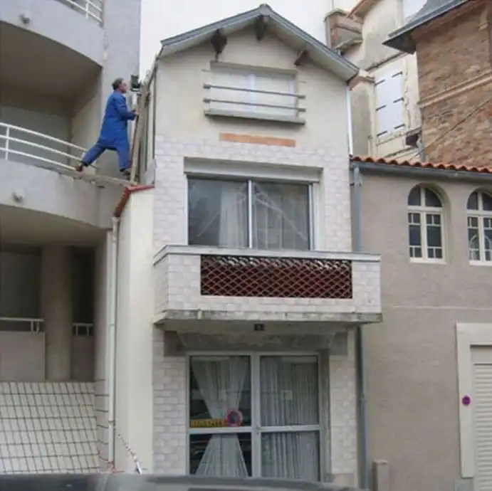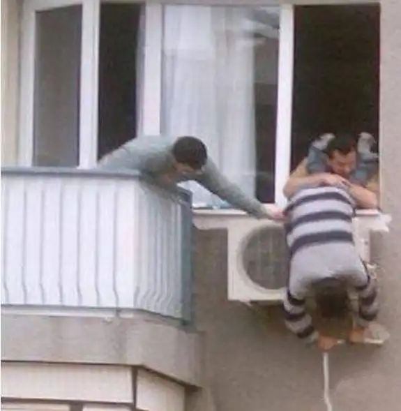 хорошо хоть чувак стоял на высоте второго этажа - отделался легким испугом.