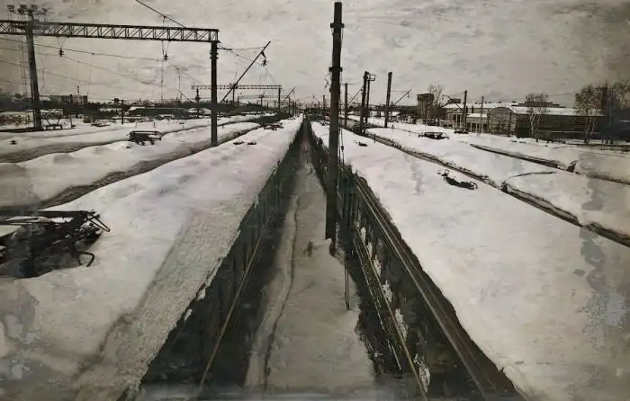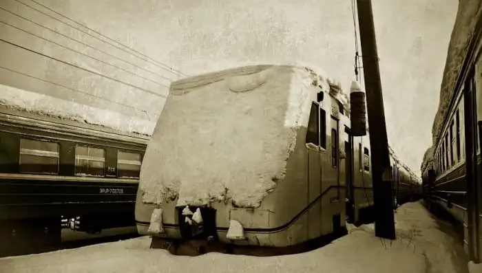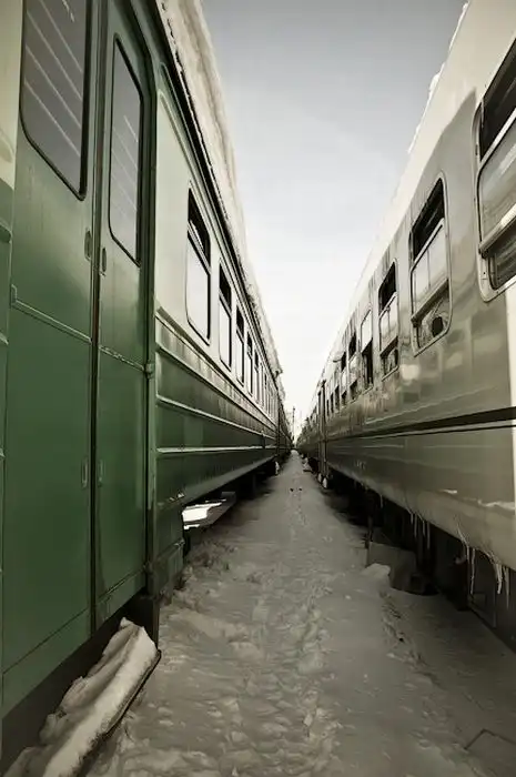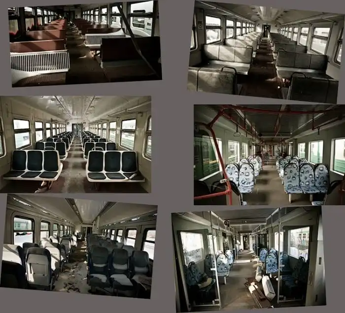 Когда-то эти поезда перевозили в своих вагонах множество людей.Но теперь они пришли в негодность.На территории одного железнодорожного депо есть площадка, где стоят сцепленные в один состав поезда, которые доживают свой век.