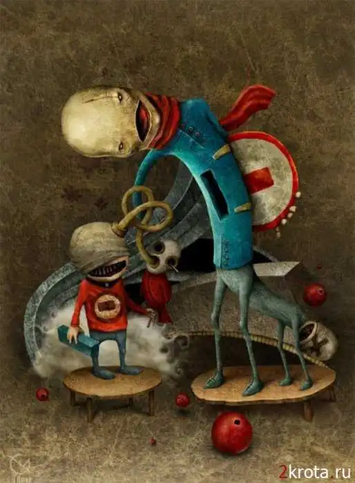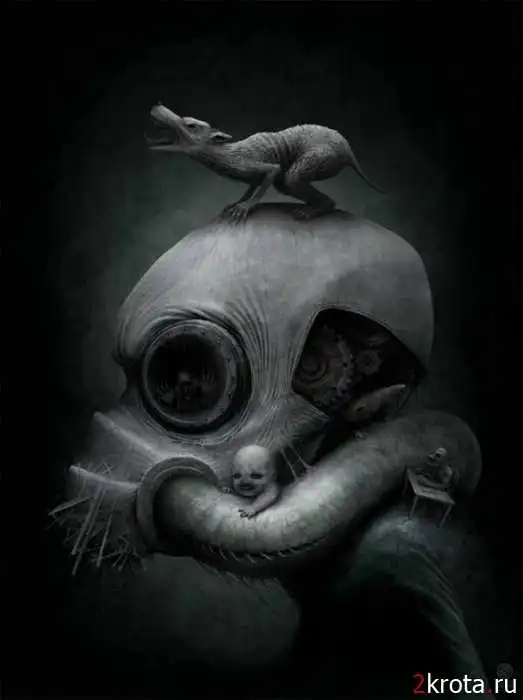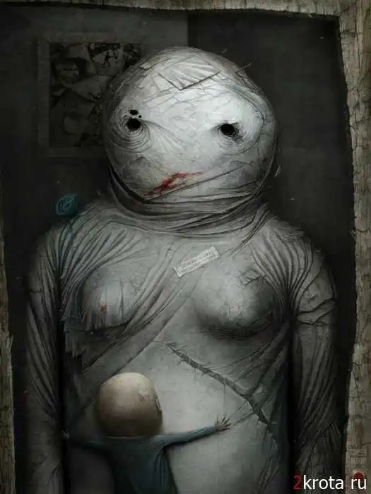 Шикарные картины. Просто нет слов - эмоции переполняют. Конечно, некоторые картики можно отнести к категории с возрастным ограничением. Жестокость, психоделика, пессимизм, страх, готические абстракции и одиночество... Всё непонятное, пугающее и странное. Это просто прекрасно! Спасибо большое автору за такой пост!