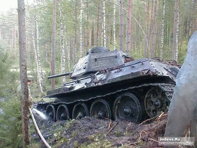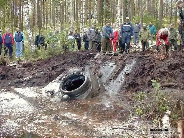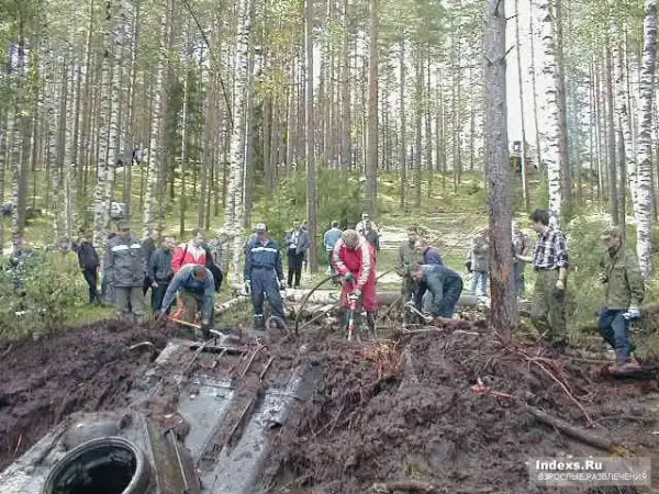 Аквалангисты клубов "Поиск" и "Ихтиандр" почти три недели размывали шестиметровый слой торфа и ила покрывавший Т-34. Танк лежал на глубине 9 метров. Их самоотверженная работа увенчалась успехом и была проделана не зря.
