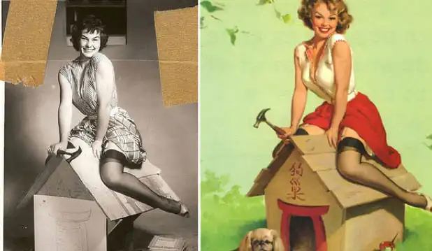 Джил Элвгрен (Gil Elvgren) – один из самых значимых художников в стиле пин-ап. Оказывается, его знаменитые работы срисовывались с фотографий реальных красавиц.