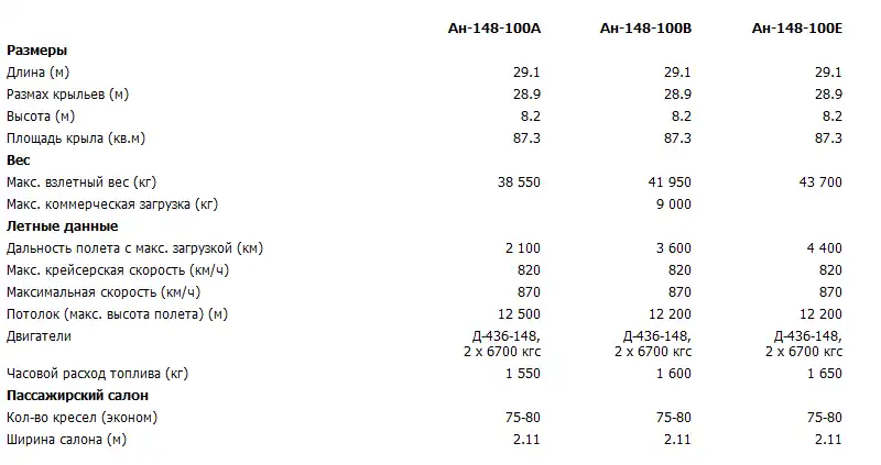 В начале приведу технические данные этого украинско-российского самолета: