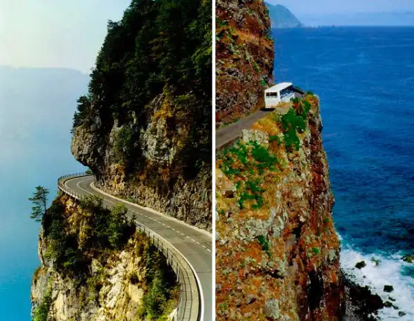 Эта дорога сделана из очень узкой полоски, вырезанной на краю скалы. Она настолько узкая, что если на ней встретятся два туристических автобуса или просто две большие машины, одной из них придется ехать назад, чтобы автомобили смогли разъехаться. А представьте, если что-то пойдет не так.. Ужасная дорога.
