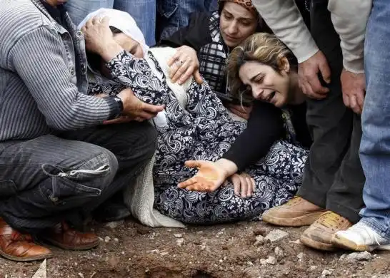 19. Мать и сестры Savas Yayik скорбят рядом с его могилой в траурной церемонии в Диярбакыр, на юго-востоке Турции