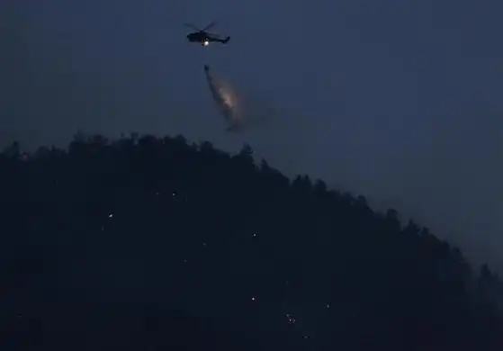 22. В Швейцарии вертолет Super Puma выливает воду на лесной пожар на юго-западне деревни Visp. Как сообщает местная полиция, во вторник днем пожар вспыхнул в мастерской кузовного ремонта, а затем распространился на близлежащий лес.