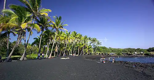 Пуналу, Гавайи. Черный песок также имеет вулканическое происшождение.