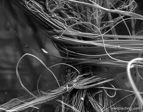 Вот волокна нейлона. По всей видимости, это колготки в мелкую сеточку (автор фото не признается, утверждает, будто так выглядит под волшебным стеклом смирительная рубашка).