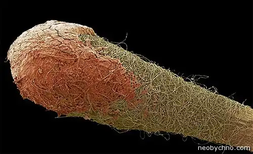 Это погрызенное обкуренным бобром бревно — не что иное, как рассеченный кончик человеческого волоса. Такая картинка должна использоваться в рекламе шампуней и парикмахерских услуг, можно и бобра пририсовать для интриги.