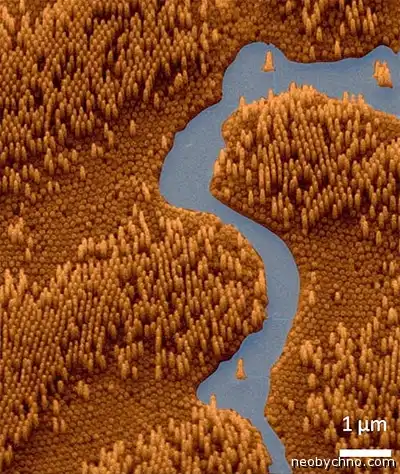 Лесом у берегов сибирской (или канадской?) речки выглядит для ученого из Техаса образец полимера, покрытого пористым силиконом.