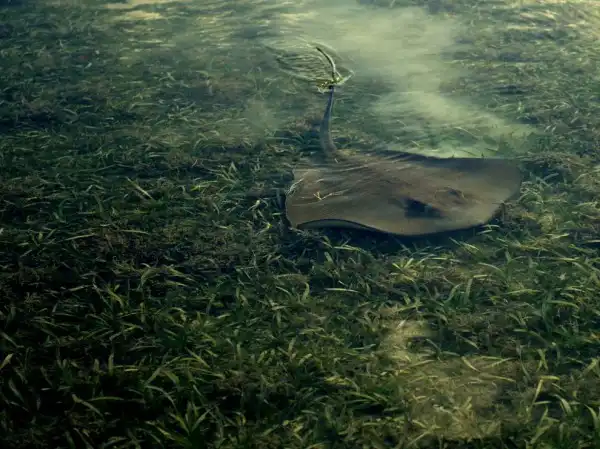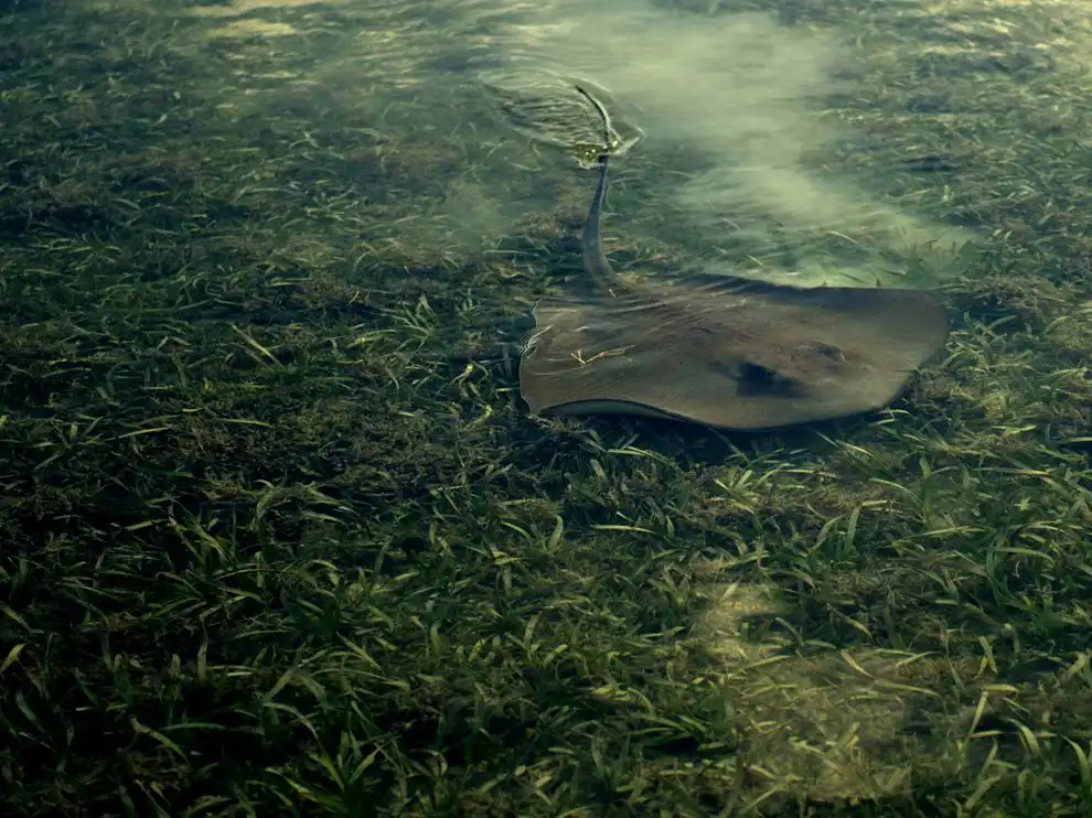 Скат на мелководье, Кий-Уэст. Рассказывает фотограф Кевин Азур: « Когда я отплыл от берега реки Кий-Уэст, я обнаружил, что мою маленькую лодку окружили скаты и акулы. Они покружили вокруг меня несколько минут, а потом расплылись по своим делам».