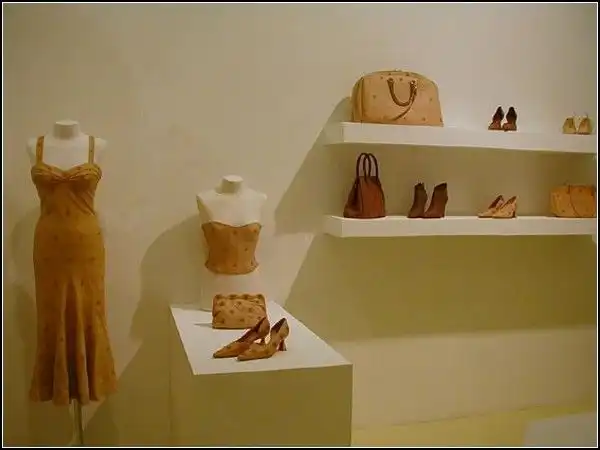 В периодически обновляемой коллекции «Человеческий мех» можно найти туфли на высоком каблуке и сумочки, «украшенные» женскими сосками, платья и корсеты из мужских ореолов и даже пару мужской обуви, которая выглядит, буквально, как из Ж.... (всем приятного просмотра). Материал - «синтетическая человеческая кожа».
